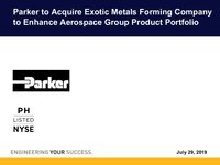 Jul 29, 2019 Conference Call and Webcast to Discuss the Agreement to Acquire Exotic Metals Forming Company
