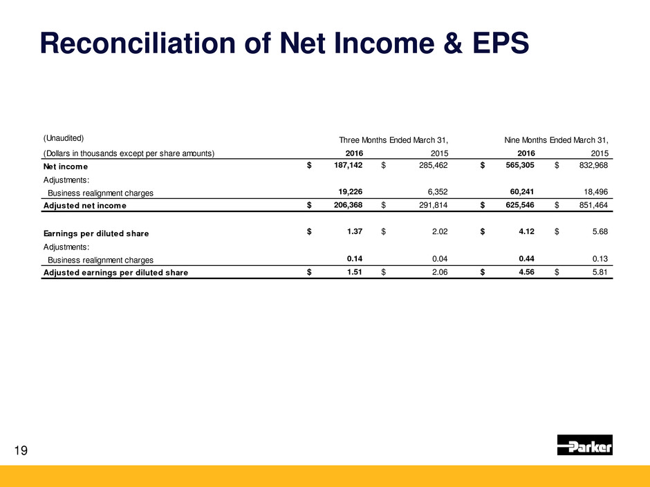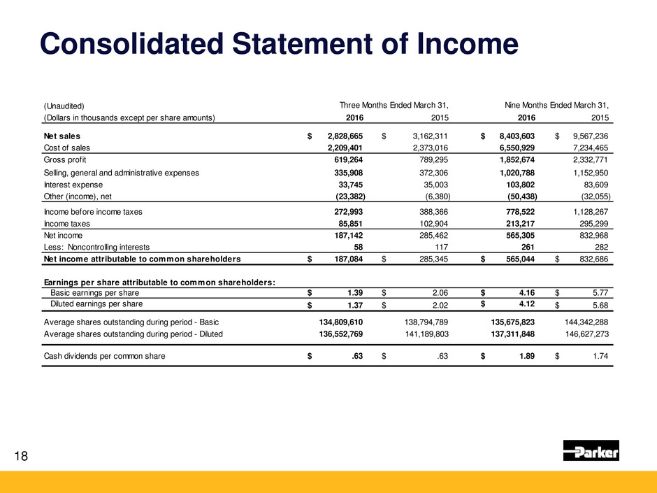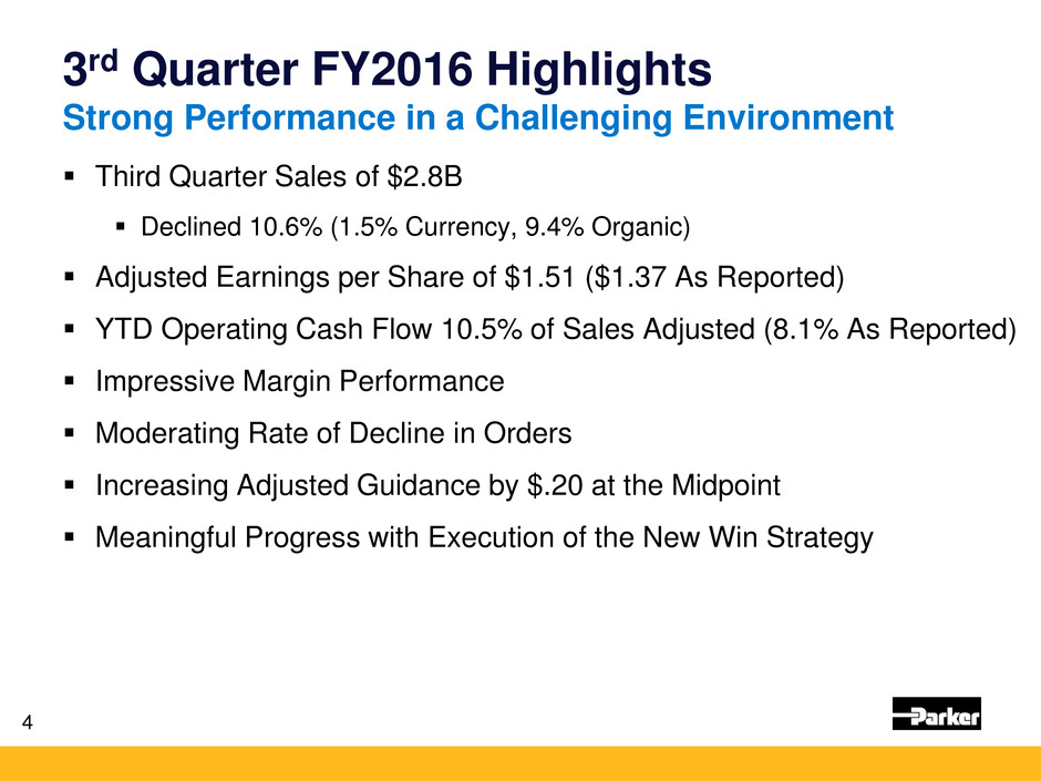 3rd Quarter Fiscal Year 2016 Earnings Release Parker Hannifin Corporation April 26, 2016 Exhibit 99.2