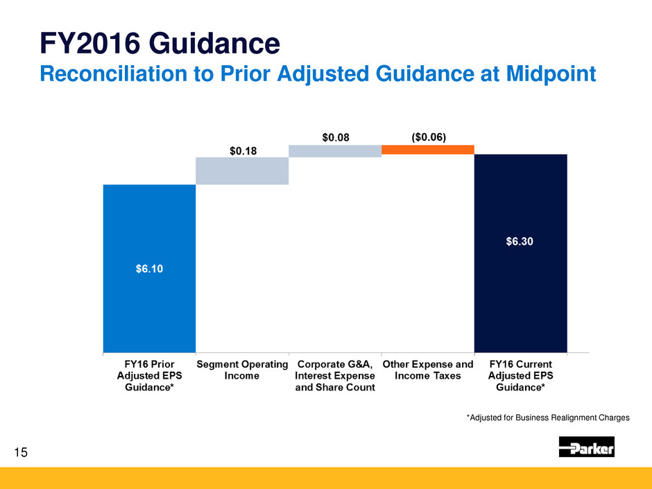 FY2016 Guidance Reconciliation to Prior Adjusted Guidance at Midpoint 15 *Adjusted for Business Realignment Charges