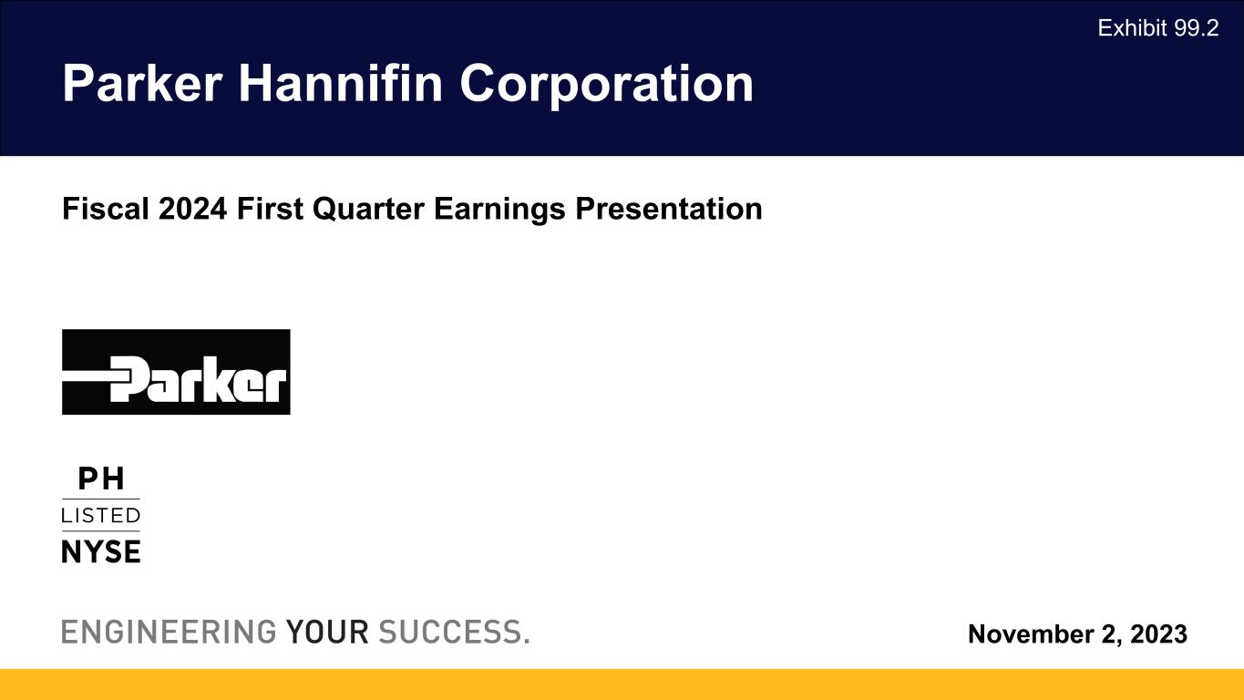 Parker Hannifin Corporation Fiscal 2024 First Quarter Earnings Presentation November 2, 2023 Exhibit 99.2